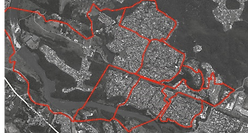 c) the Alphaville district in Sao Paulo (Brazil) that, over time, grew from a smaller gated community into a city within a city, gating nearly 20’000 affluent residents from the poorer densely populated surrounding region..